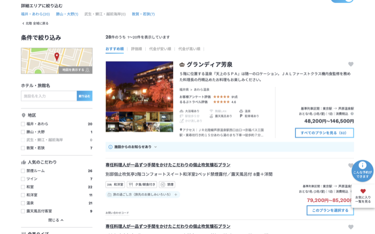検索結果の中から、宿泊するホテルとプランを選択します。▼