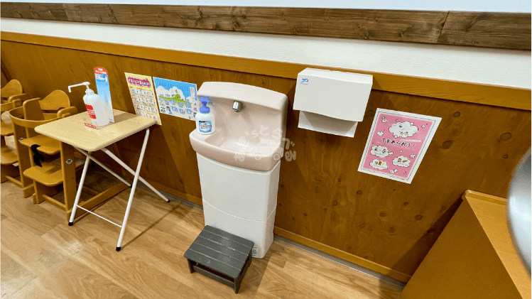広くて綺麗で設備も充実しているベビールームがあります。ハンドソープや調乳用の給湯器も完備されているので、何も不自由はありません。