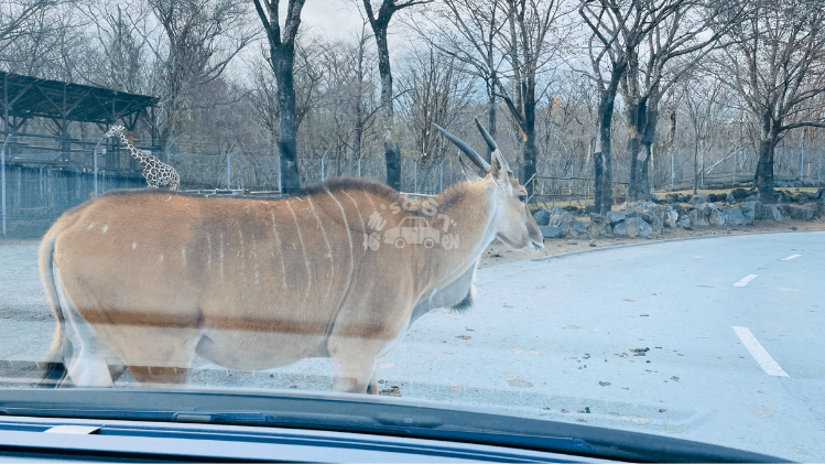 動物が放し飼いされてるエリア(サファリゾーン)にマイカーで入れて、間近で観察できるのが最大の魅力の動物園です。