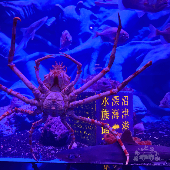 目の前の沼津湾は『世界一深い湾』とされており、陸地からごく近い距離でなんと水深2,500mまで落ち込んでいます。そのため、沼津沖で漁をするとたびたび深海魚がかかってしまうようで、そういった深海魚たちが展示されているのが沼津港深海水族館なのです。
