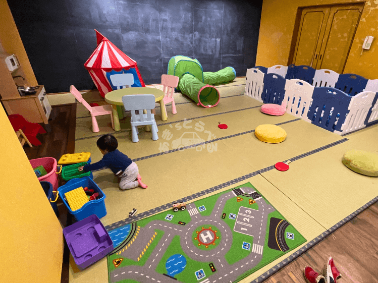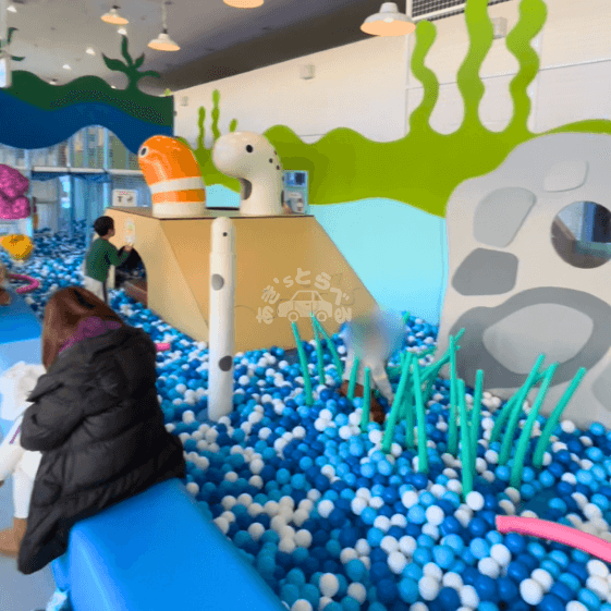 特に室内キッズコーナーの規模が印象的で、コンビネーション遊具に巨大ボールプール、人工砂場まであります。ここだけで1〜2時間遊べてしまうくらいの充実ぶりでしたよ。